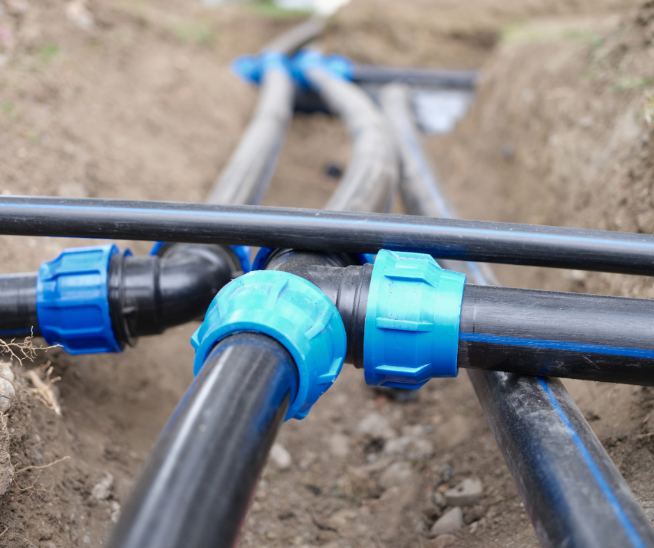 - Lay Down the Main Lines: Start putting in the main supply lines following your plan, making sure they go where they’re supposed to and slope the right way for water to flow properly. Use trenching tools or a trencher to dig the trenches to the right depth, adjusting as needed for things like frost protection.